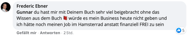 Absolut geiles Buch was Gunnar Kessler hier herausgebracht hat da lernt man viele wichtige Sachen für das Leben was man in der Schule nicht gelernt hat vor allem wie man aus dem Hamsterrad „Zeit gegen Geld zu tauschen“ herauskommt. Danke Gunnar